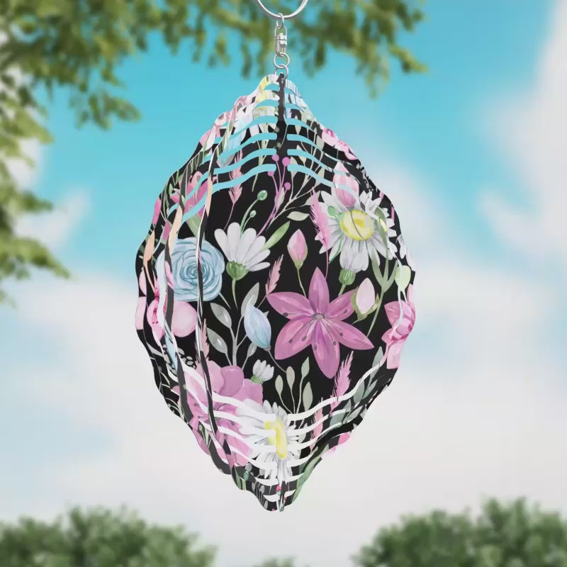 Enhance your garden or patio with the striking Flowers on Black 10-Inch Wind Spinner. This elegant spinner features a stunning double-sided design that contrasts the vibrant beauty of flowers against a sleek black background, creating a dramatic and eye-catching effect in any outdoor space.