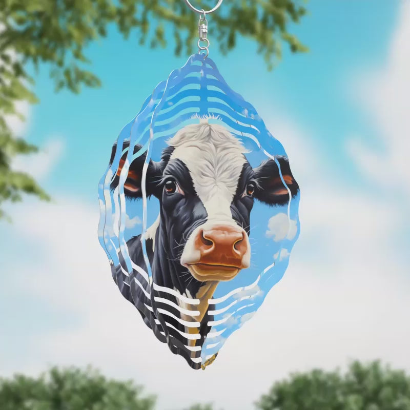 Bring a touch of rural charm to your outdoor space with our "Cow and Clouds" 10-inch wind spinner. This whimsical design features a serene scene of a gentle cow grazing beneath a sky dotted with fluffy clouds. The double-sided design ensures that this charming pastoral scene is visible from every angle, adding a delightful and serene touch to your garden, patio, or porch.