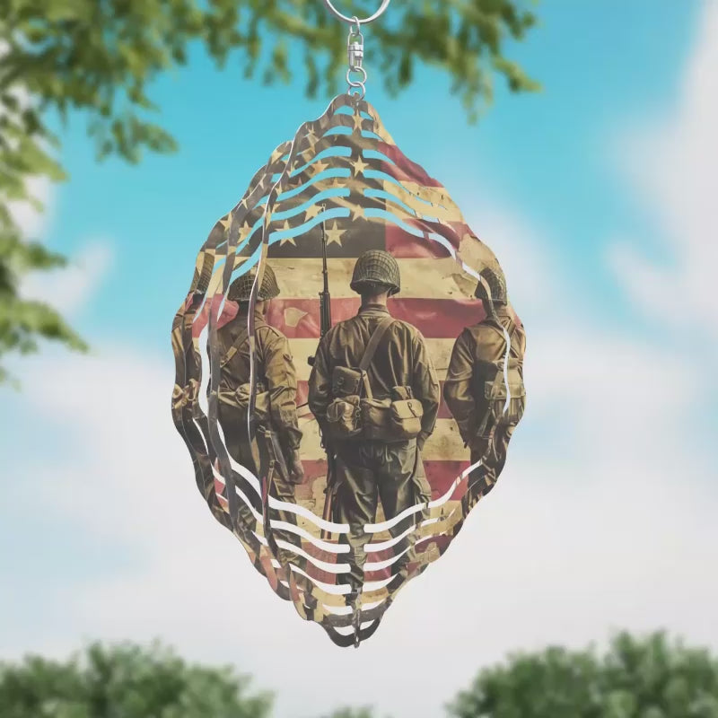 Army Combat with American Flag Novelty Metal Wind Spinner
