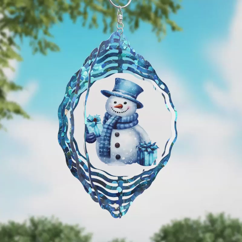 Snowman with Blue Glitter Novelty Metal Wind Spinner