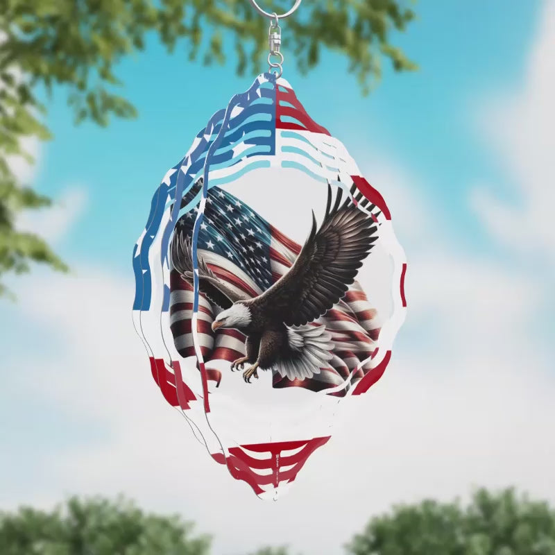 American Flag Flying Eagle Novelty Metal Wind Spinner