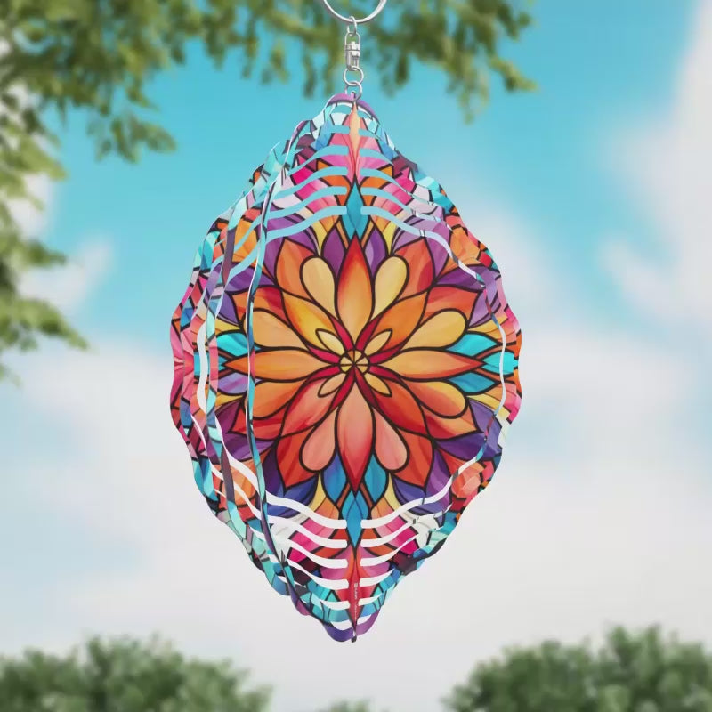Infuse your outdoor decor with the timeless beauty of our "Stained Glass Flower" 10-inch wind spinner. This elegant design features a radiant flower rendered in vibrant stained glass colors, creating a stunning visual effect that mimics the beauty of traditional stained glass artistry. The double-sided design ensures that this exquisite flower is visible from all angles, adding a splash of color and sophistication to your garden, patio, or porch.