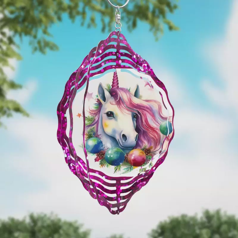 Add a touch of enchanting sparkle to your outdoor decor with the Unicorn Pink Glitter 10-Inch Wind Spinner. This whimsical spinner features a delightful unicorn design highlighted by a vibrant pink glitter effect, making it a charming and eye-catching addition to your garden, patio, or yard.
